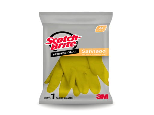 Guante de Limpieza Satinado 3M Profesional está hecho de 100% hule latex natural, resistente a los limpiadores químicos de limpieza, disponible en tamaño grande y mediano. Ideal para protección en trabajos de limpieza, jardinería y otras actividades donde requiere protección personal.