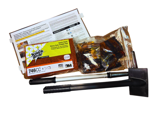 El Kit para Limpieza de Parrillas y Planchas 710 de Scotch-Brite™ es un sistema completo para la limpieza de planchas y parrillas comerciales. Este sistema es más rápido, más seguro y más fácil de utilizar que los productos de limpieza de planchas tradicionales.